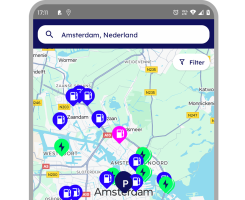 De app navigeert je naar de dichtstbijzijnde locatie, of je nu een parkeerplaats, tankstation of snellader zoekt.